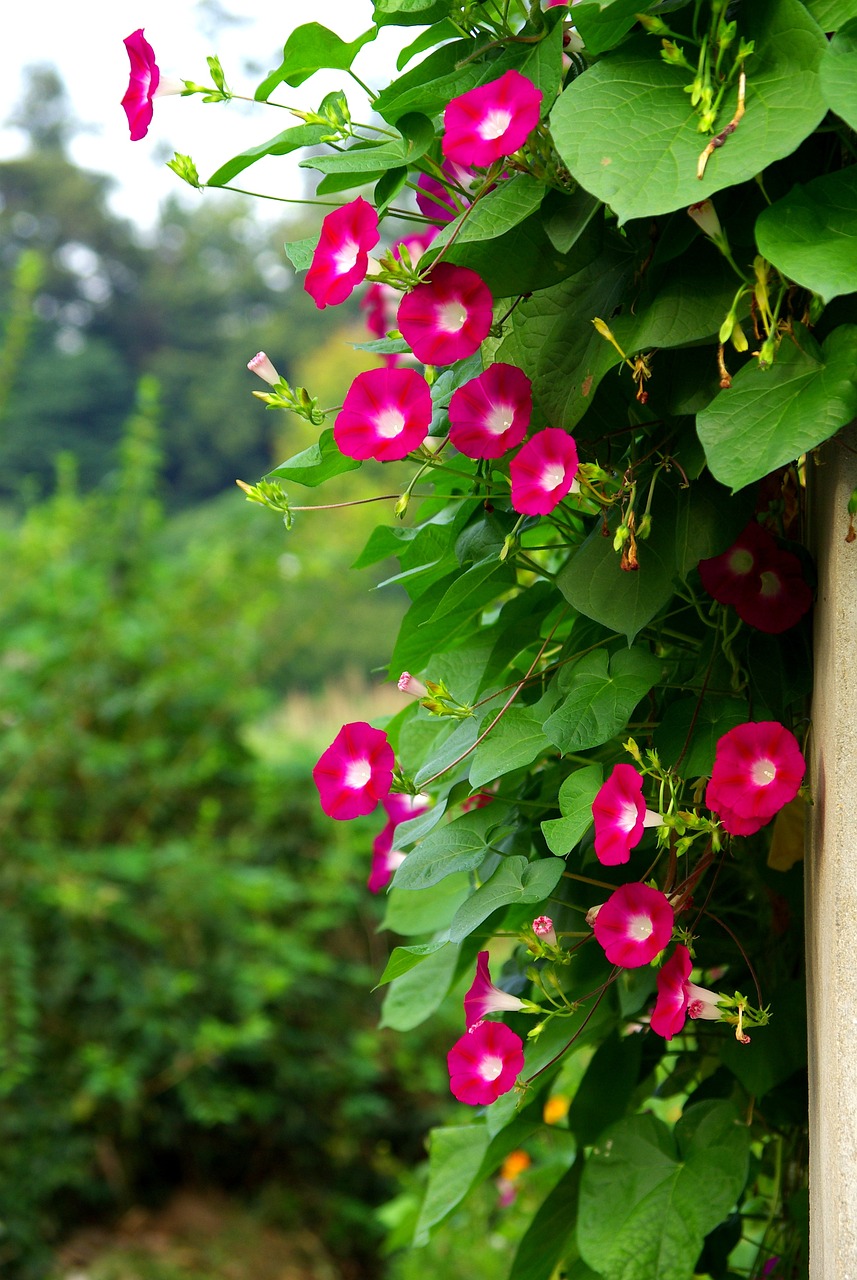 이름 그대로 약 100일 동안 꽃을 피워주는 백일홍은 다양한 색상이 매력입니다. 분홍, 빨강, 흰색 등 다채로운 컬러로 정원에 생기를 더해줍니다. 여름꽃 종류 중에서도 관리가 쉬운 편이라 인기가 높아요. - 나팔꽃